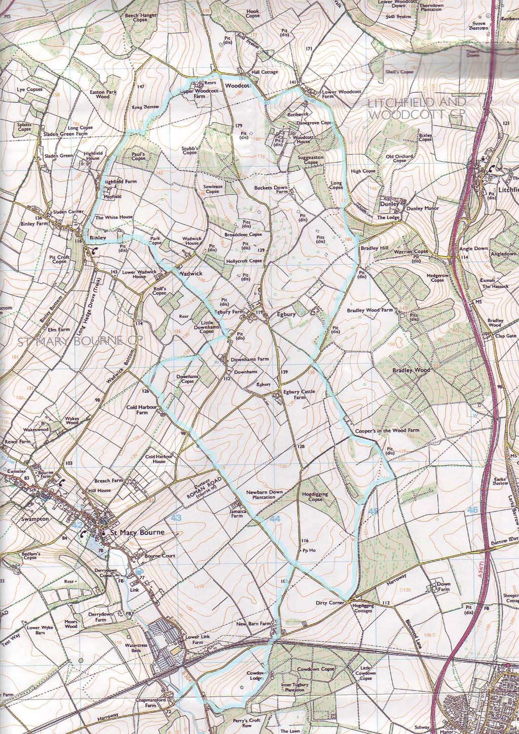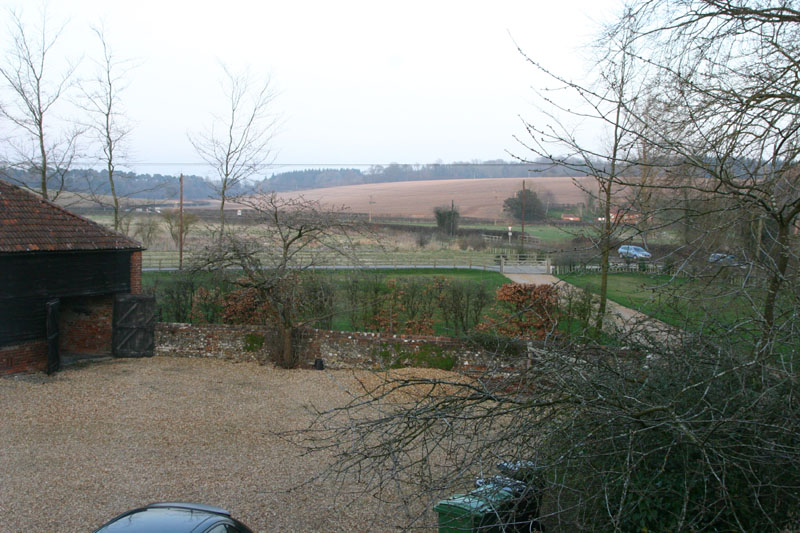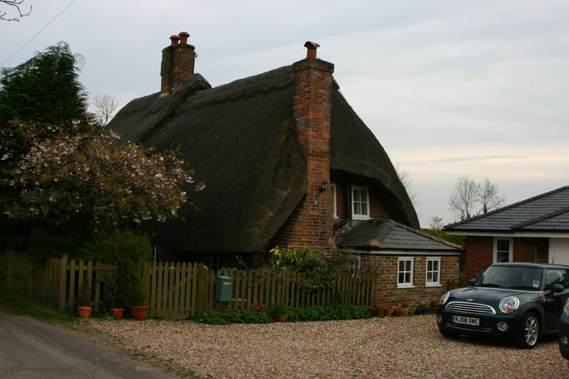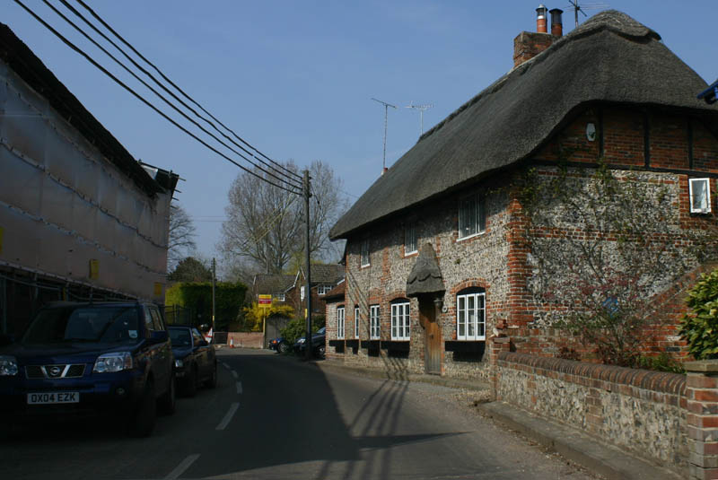 Another bike ride picture. Some of my "trail" is on footpaths around fields that farmers have opened up to the public. My bike ride is about half on the "single track" road, and the other half is on footpaths and other trails that appear on the Ordnance Survey Explorer maps (which is where my bike path map came from). I rarely see more than two cars on the paved parts, and often don't see any! I met an elderly lady who was pruning the cemetary at the tiny (and old) Woodcott church. She said she'd lived there all her life, and it had always been very quiet and peaceful around here.