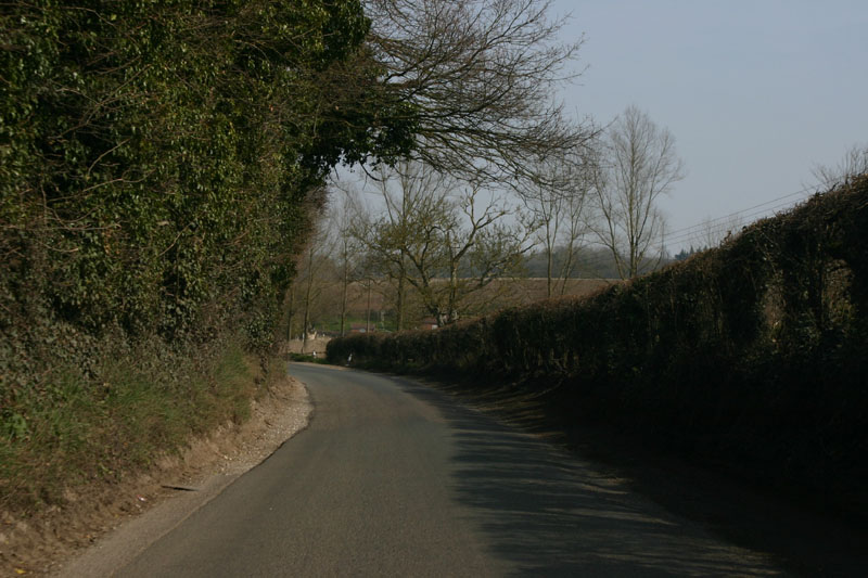 It gets worse, but this is still two lane. There's a watercress farm next door to "the farm" so trucks are a real concern on the "single track" road between here an town. What you don't want to meet around one of these curves is a giant watercress truck!