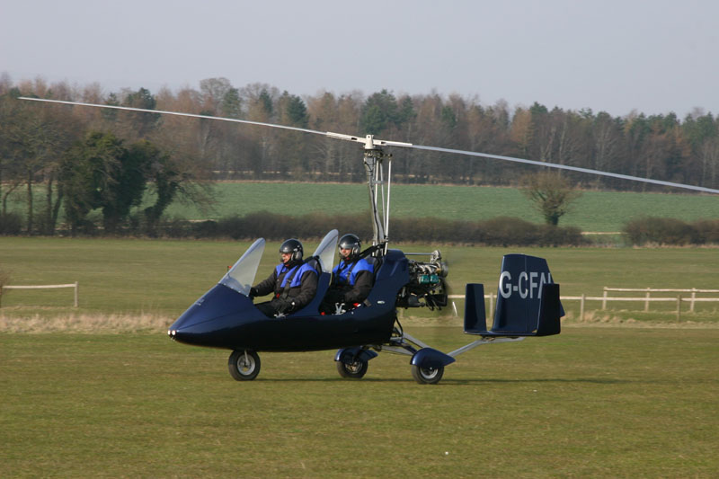 A two-seater gyrocopter of some sort. They were certainly having a lot of fun doing touch and goes. Matcing "His and Hers" cold-weather outfits tell you she's not just a fair weather friend.