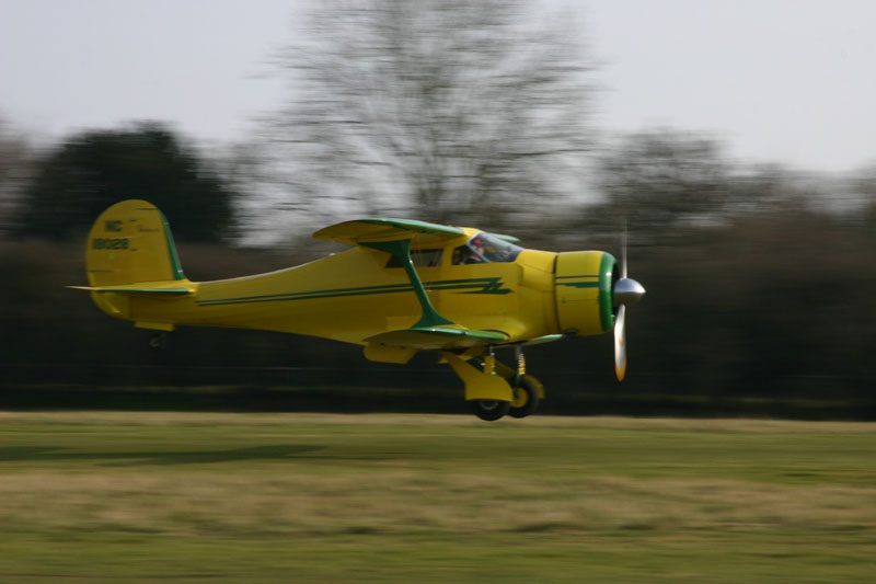 A very nice Beech Staggerwing, coming home from a long flight.