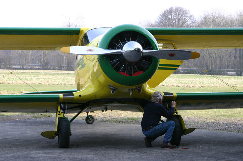 The Staggerwing owner was doing a little re-rigging of his landing gear close-out doors. Is this plane not drop-dead gorgeous?