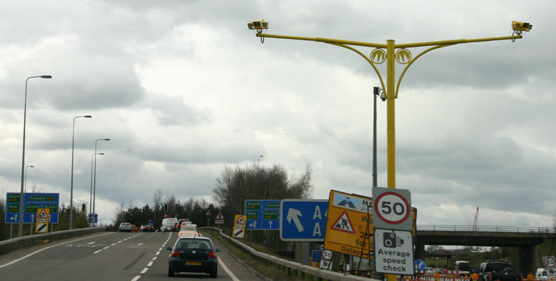 There are cameras everywhere on the motorway, but the ones that really count are the yellow ones. Apparently they are required to point them out to you with road signs, so everybody slows down for them. My GPS even came with them programed in, and a warning that one is approaching. The other 90% of the cameras are used for traffic congestion and other surveilance.