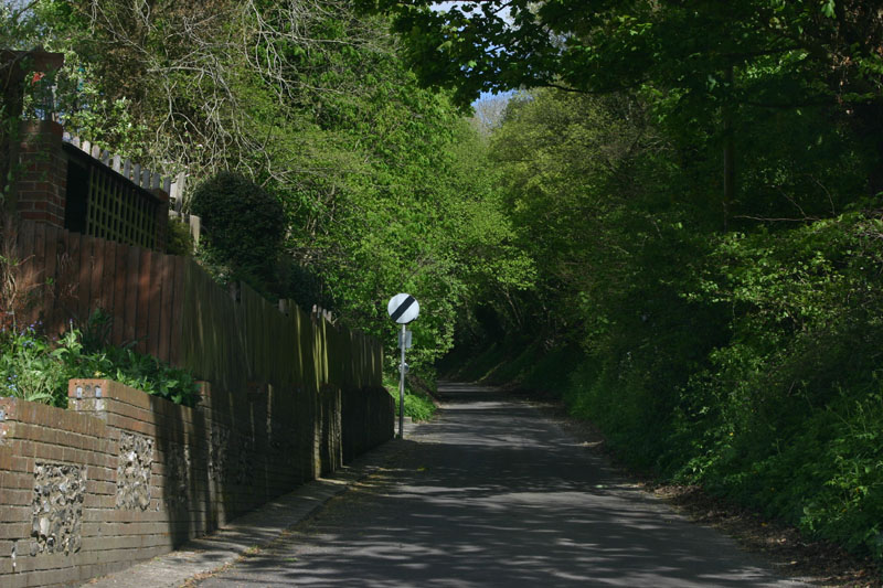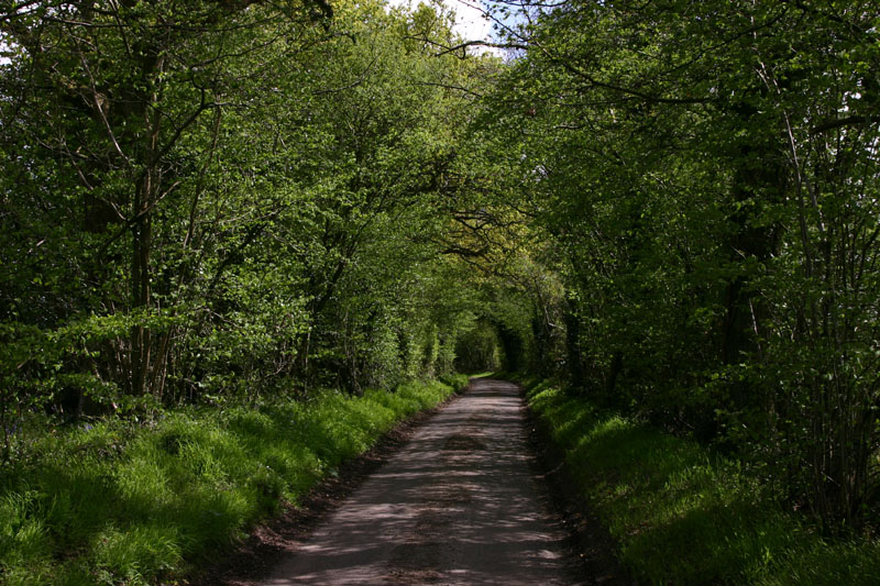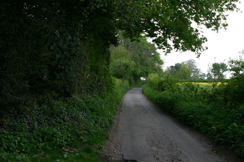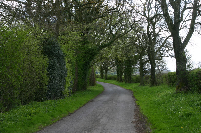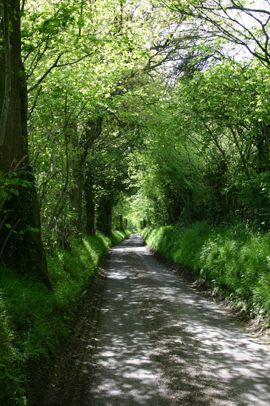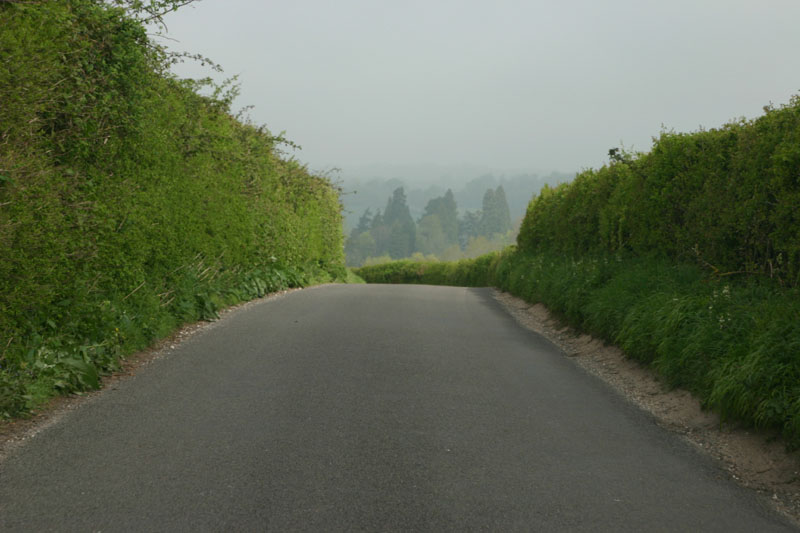 This is a seriously single lane road bounded by hedgerows. You can see the tire tracks take up the whole road, and these are narrow cars. If you meet somebody here, somebody's going to back up a long way, which people are more than willing to do. Sometimes you both start backing up, and it becomes a battle of the wills to see who's going to be assertive and take the opportunity to get on down the road. Even on my bike, people go way out of their way to give me plenty of room. It's almost embarrassing. It's as if car drivers are also bike riders, which is entirely possible and would explain their concern for bike riders. There are plenty of bike riders too, so it's something they're always on the watch for. They drive fast, but they also drive with their attention riveted to the road ahead of them, as if some idiot on a bike was just around the curve, waiting to be killed. I like that attitude...so far it has worked for me!