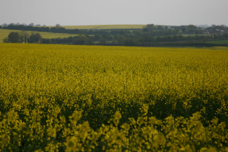 This stuff is "rape". It's mostly used for ethanol production and things like rape seed oil (similar to olive oil). It's really cool looking, and covers about a third of the fields in this area. If you did the Google Earth thing above, you can see the yellow just starting to show in the fields. It's a favorite target for the crop circle folks, which is probably why you see so many gates and "NO ACCESS" signs around fields. Speaking of gates, I've seen a hundred different ways to fasten the two halves of a gate together, as well as to hang them from the posts. I should start a web page on that alone...