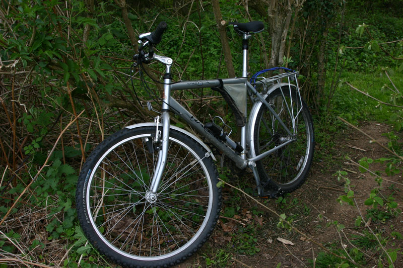 My bike's a used Raleigh mountain bike with good Shimano components and a bomb-proof steel frame, which I paid a hundred pounds for (about $140). It's a little heavy, but I figure that's just more excercise for me, which is the main reason I ride anyway. I considered ditching the frumpy looking fenders, but they are nice on mud and wet roads, so now I'm planning to put them on my bike at home. Note the new bike pump on the frame. I rode about 15 miles on these things today and met ONE car along the way. Nice rolling fields, trees, thatched roof houses, and that sort of thing.