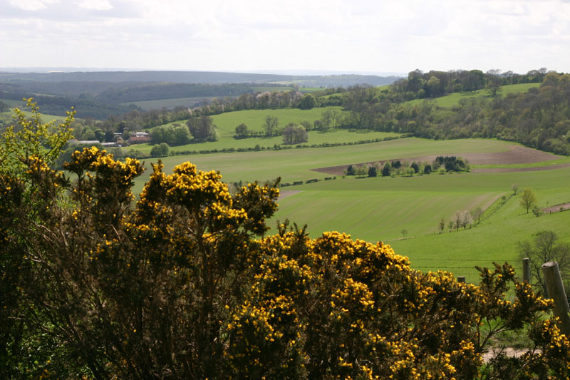 I'm told this yellow festooned bush is called Gorse. I took this from a place called "Combe Gibbet", a hill along the "Wayfarers Walk", which is an National walking trail that extends about a thousand miles through England. It passes within 8 miles of where I live, and goes all the way to the southern coast. It's the equivalent of the Appalacian Trail in the US.