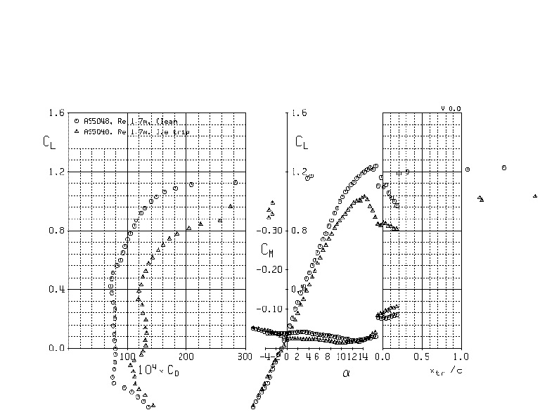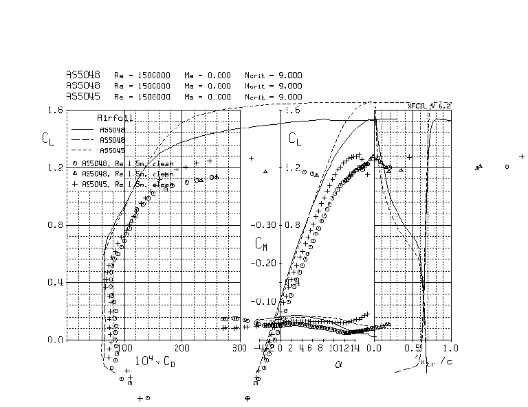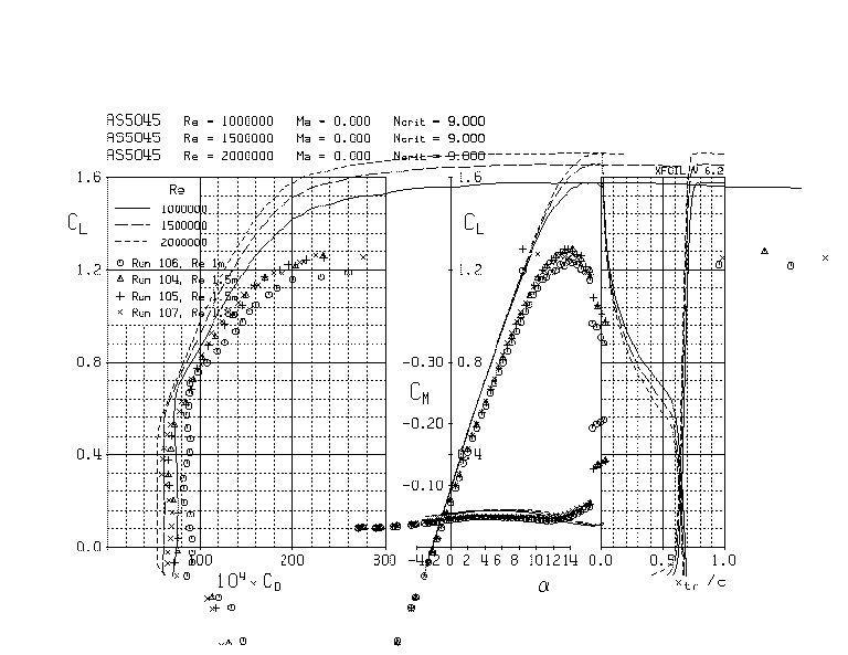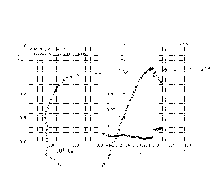 The AS5048 airfoil was tested at Re of 1.0, 1.5 and 1.7 million. This airfoils