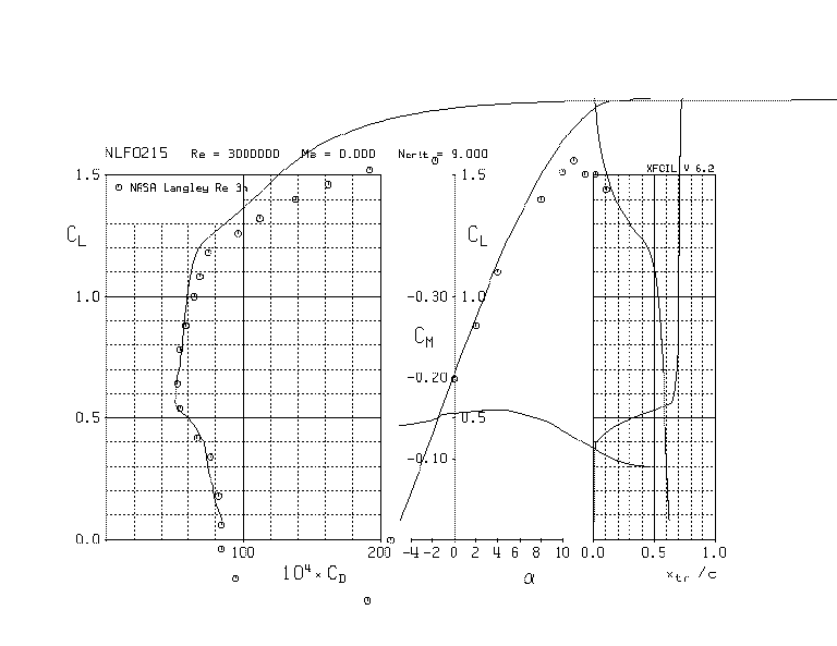 the XFOIL predictions for the NASA NLF(1)0215 airfoil with the experimental