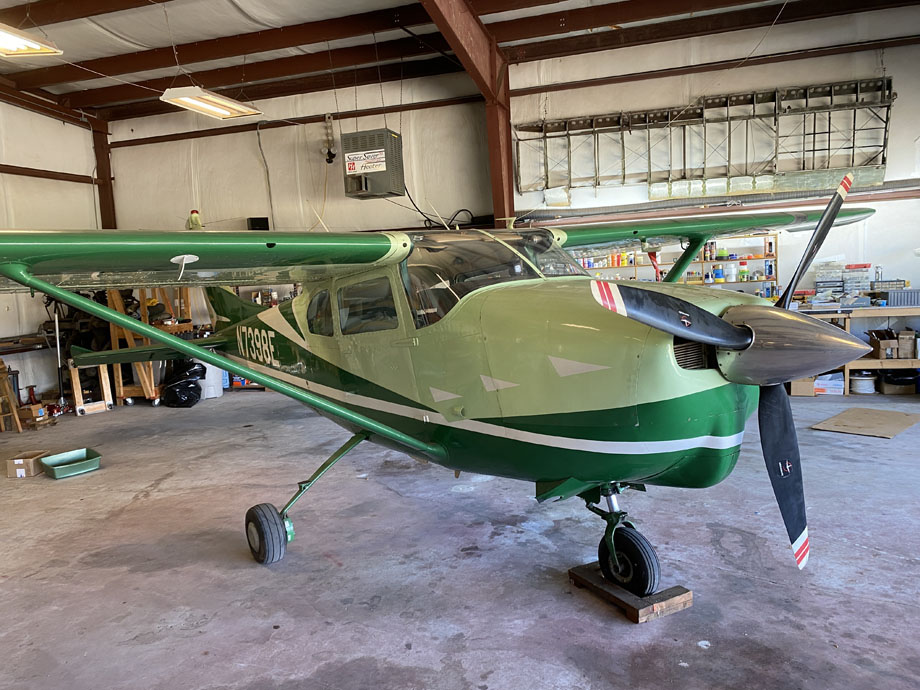 C-210's two-tone Imron epoxy paint looks like new (have paint codes for both shades of paint..."Brite Green and Light Green"). Some of the photos on this site show a dull finish, but it's just dust that was washed away for the more recent photos. Imron is very tough paint, and has a great shine to it.