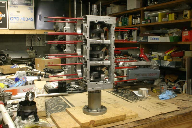 For more on the engine assembly, see trial assembly page, and a lot more on the Corvair engine at Mark Langford's Corvair engine.