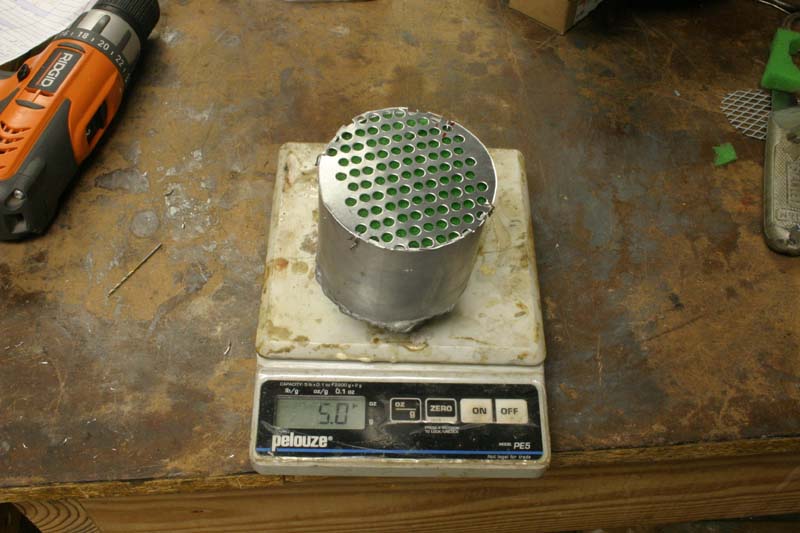 This one only weighs 5 ounces, as opposed to the "fuel pump breather", which weighed 10 ounces, and this one has about 10 times more filter area. [After 40 hours of flying, the top of this thing doesn't have so much as an oily film on it...it's still squeaky clean!]. I have a dollar in this thing, and four hours of labor, so I guess it's still not exactly cheap from that standpoint. I needed the welding practice though, as you can see.