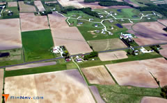 As you get closer to the ground, this ring shrinks into nothing. That's what I was facing toward the end of the glide, shown above. The wind was out of the west, so I was planning an approach from the east. As you can see, I was approaching from the south into 2T5 (east of West Bend, WI), a 2900' turf strip, but simply couldn't identify anything that looked like a runway, so after all my altitude was burned up, I turned right (downwind) to land in another field in the last few seconds. I later found out that the airport had been sold the previous year, and most of the runway was planted in corn now, with a very short remaining portion devoted to RC model flying! Most of the brown soil you see in this winter-time photo was 8' tall corn when I flew over...not the best thing to land in.