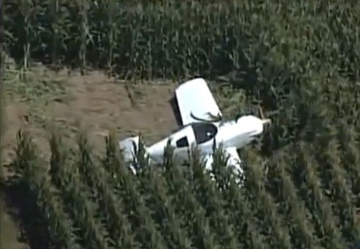 I was "on the fence" between the road and the bean field I was over, which was punctuated by a corn field. I knew if I didn't get stopped, the corn field would stop me pretty quickly. An approaching 18 wheeler clinched the decision to choose the bean field, and the touchdown point was pretty close to where the blue line ends. The end of the extended red line is where the plane ended up, about 15' into the corn. The plane was amazingly intact, and I don't even think any paint was traded with the corn. Other than a broken prop and a wheel pant fracture, the only damage was to the tailwheel area, after the tail pitched up and then dropped after the corn impact. The tailspring itself was still fine, which surprised me.