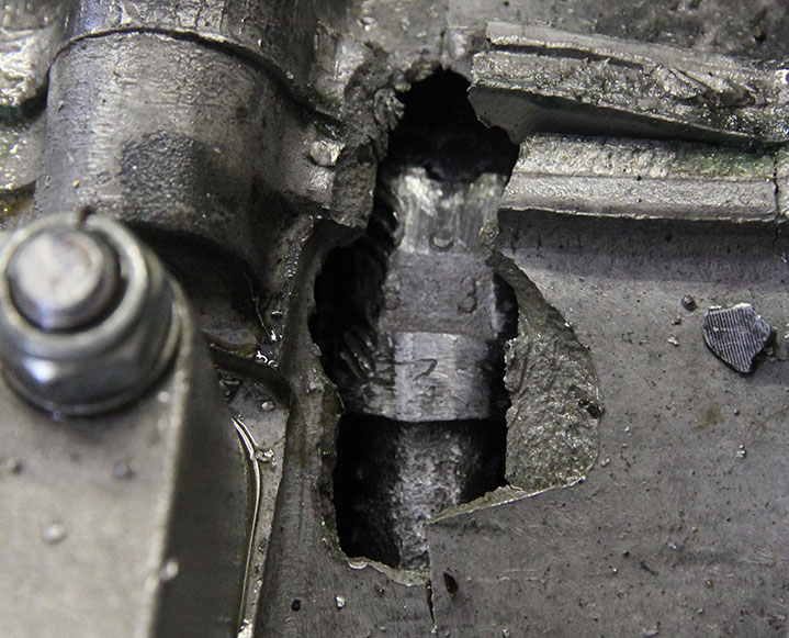 The plane is back in my hangar, but it will be a while before I dig into the engine. At first glance, the hole in the top of the engine case indicated a broken rod bolt or spun bearing. The piece of aluminum on the right has an imprint on it that I'd later know was from the imprint of the rod bolt threads. I've rebuilt a lot of VW engines over the years (I was a VW mechanic at a dealership before going to school at Auburn), so this is not my first rodeo. I rebuilt my first VW engine (for my new '74 Karmann Ghia) at 18 years old. And I've never had a problem with an engine that I built until now (other than broken crankshafts, which I attribute to "Corvair flight performance envelope research", rather than anything I did to cause them.