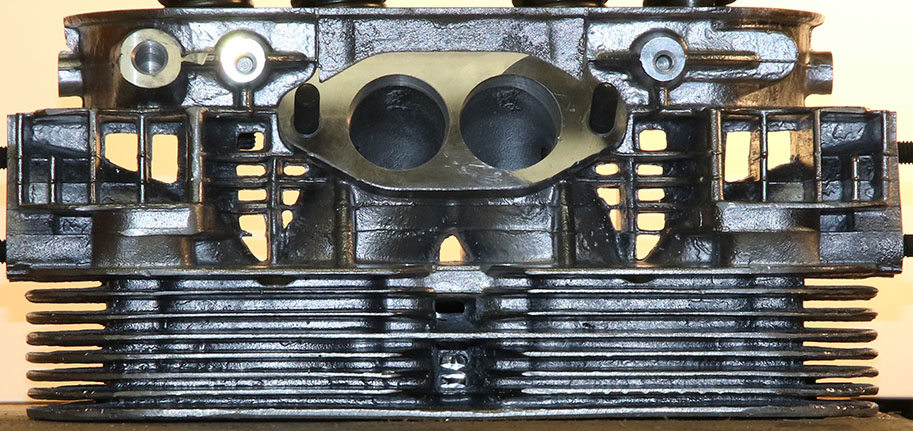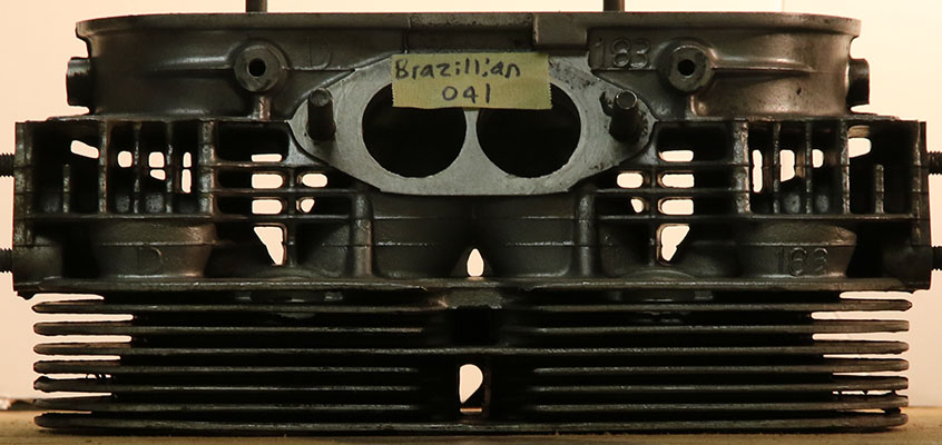 Above is an 041 Brazilian VW "factory" head, which I put on my 2110cc Karmann Ghia back in 1980 (I don't throw anything away). This head clearly has better air passages than anything else I've seen in the aftermarket world these days. After some research that included the December 2010 issue of Hot VWs Magazine, I found a comparison of 18 VW heads, and a few of them looked very much like the 041 above. The best looking head in 2010 article was a Chinese clone of the 043 head, and the passages are quite generous (even larger than the head above) and casting quality appears to be pretty decent. These Chinese heads are marketed by several VW parts houses in the US now, and reports on the Samba (VW Bus) list indicate that they do indeed cool better.
