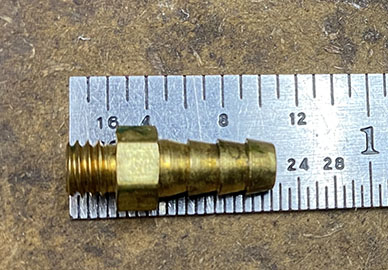 Next was figuring out the threads on the brass fittings, which turned out to be 5mm x 0.8mm, with a 3mm (1/8") diameter passage hole. These are not tapered threads, but straight threads, so don't get lost on that rabbit hole like I did. Our local RC model shop didn't have them, but I did find some similar ones on Amazon,