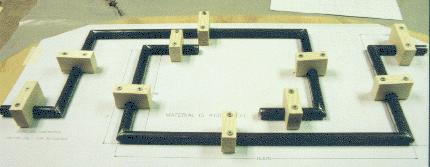 Once all of the pieces were cut and the ends deburred, I chamfered the joints a little for welding. This just means that you bevel the ends so that the weld takes place in a V-shaped groove for proper penetration. The components were then jigged to a board to ensure the proper geometry. It's not much fun trying to chase parts around on a table while trying to weld. And this way, the parts are going to be relatively accurate. The parts were tacked together, removed from the jig board, and then welded all around.