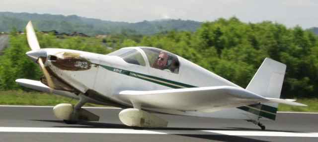 His wings are the AS5046 with the regular KR2 planform and length, but with only 1 degree of incidence at the root and zero at the tip (1 degree of washout). His horizontal stabilizer is at the stock angle of zero with respect to the fuselage, mainly because he didn't want to tear it out and redo it when he built the wings. The wing rebuilding happened after an engine-out landing on a farm road that went sour after a tractor pulled out in front of him at an inopportune time during rollout. He can do 200 knots flatout straight and level. It stalls at 50 knots power off and 45 power on, with no wing drop. The tail shakes a little for the stall warning, and Troy says you get plenty of notice.