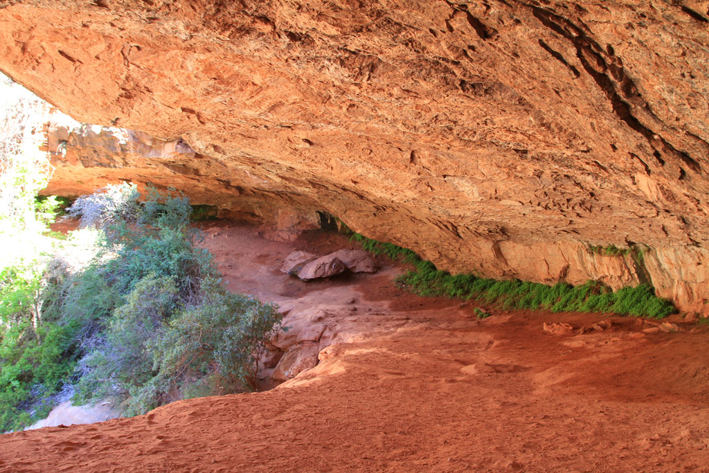 The green vegetation lines the "Calf Creek", which is reportedly one of the nicest hikes in Utah.